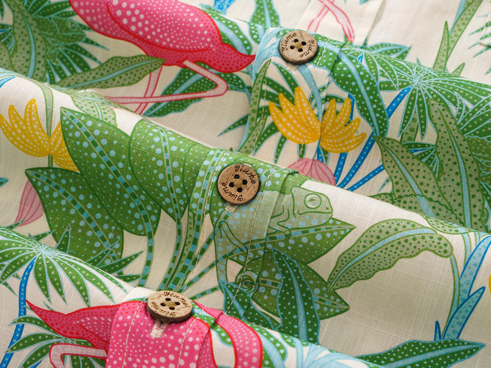 Filosofien bak disse Aloha-inspirerte skjortene er å tilby klær av høy kvalitet som er miljøvennlige, med unike kunstneriske design, som muliggjør selvuttrykk og en avslappet holdning.