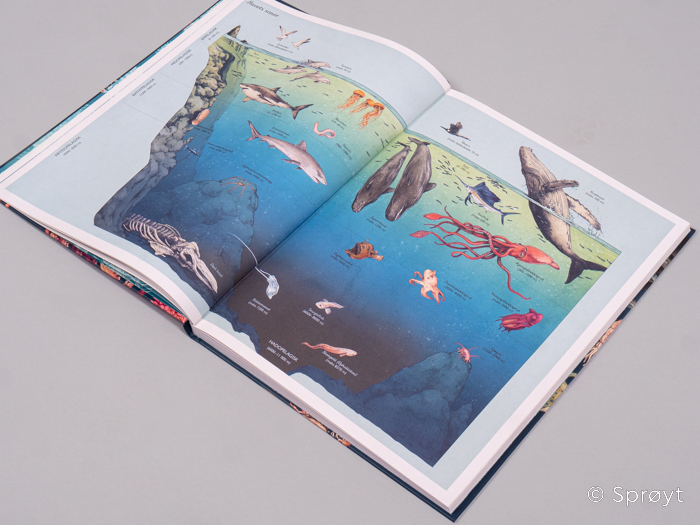 Oppfølgeren til Animalium og de andre prakt-faktabøkene i samme serie. Hvorfor ser jorda blå ut fra verdensrommet? Fordi det aller meste av overflaten er dekket av vann. Det gjør kloden vår annerledes enn alle de andre planetene i solsystemet. Kanskje alle andre planeter i universet. Det er fordi vi har vann, at det kan være liv på jorda. Bli med ut på havet, og ned i dypet! Bli kjent med de som lever der, fra bitte små alger til de største levende vesenene som noen gang har eksistert. Og se hvorfor livene våre er så avhengig av havet. En flott gavebok, tilpasset norske forhold. Dette er en faktabok om havet for barn, og passer for hele familien. Loveday Trinick er marinebiolog, og jobber med å holde foredrag for skolebarn i alle aldere om havet, og hvorfor det er så viktig for oss. Ved å inspirere barn, håper hun at nye generasjoner blir flinkere til å ta vare på havet. Teagan White er pseudonym for to kunstnere. Mange av verkene deres tar for seg forholdet mellom natur og mennesker. De er også engasjert i arbeidet med å ta vare på verdenshavene.